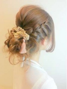 前髪を残して、サイドを編み込み後ろでまとめたスタイルです。